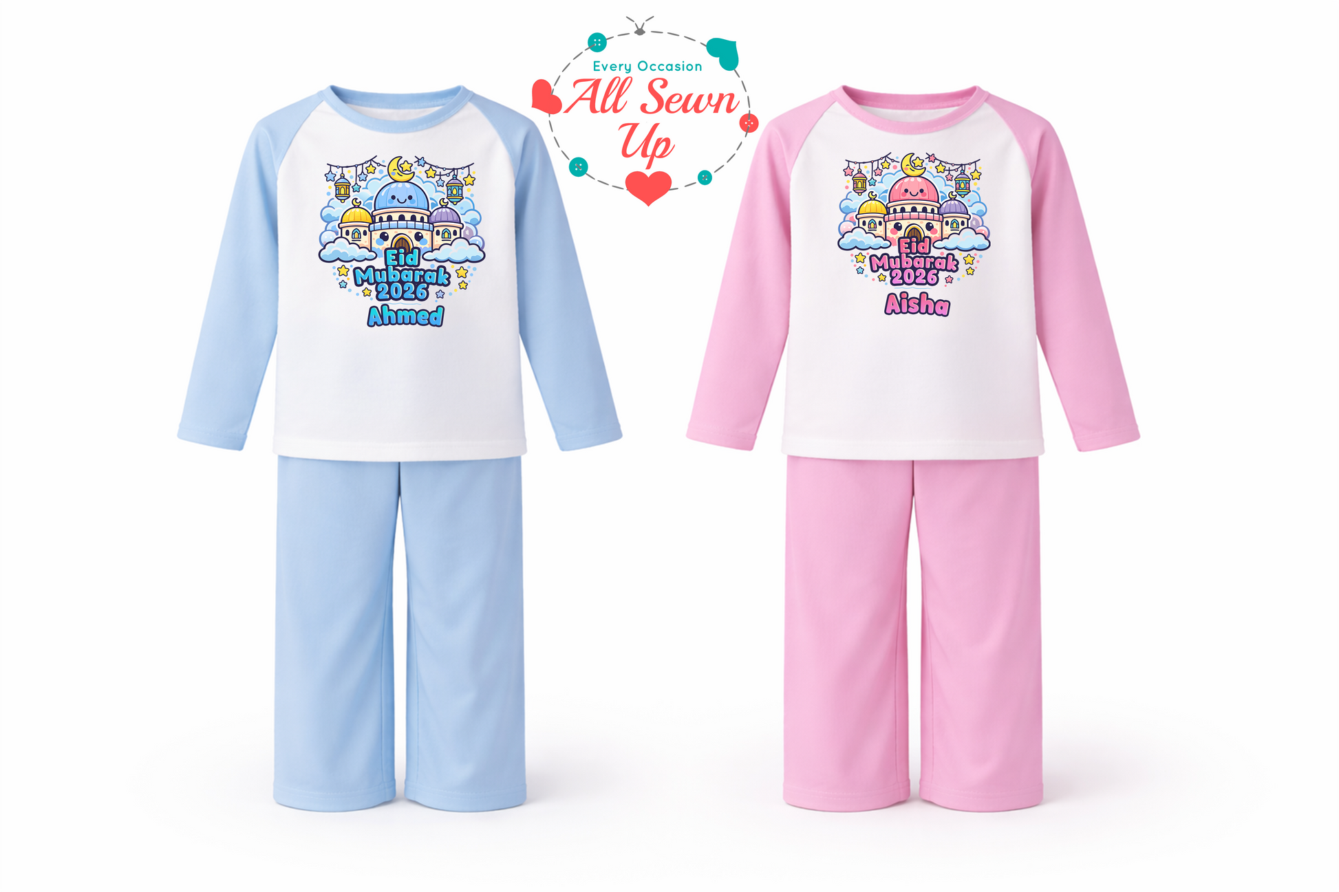 Celebrate Eid in style with our beautiful 100% cotton pyjamas and rompers—thoughtful, cosy gifts for your loved ones. Each piece is printed to order, personalised to make your gift truly unique! Make this Eid extra special with a heartfelt, custom touch—because the best gifts are the ones made just for them.